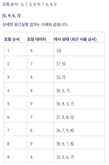 5. 1) LRU (Least Recently Used) 캐시 알고리즘을 사용하는 시스템이 있고, 캐시 크기는 4로 설정되어 있습니다. 아래 요청 순서에 따라 각 요청 후 마지막 캐시의 상태를 배열로 기록하세요.
