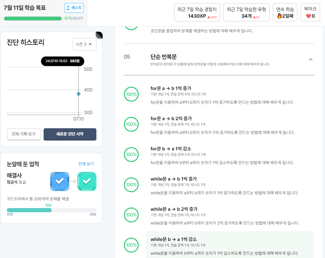 24.07.11 코드 트리 반복문 학습 & 유니티 이벤트 함수의 실행 순서 본문