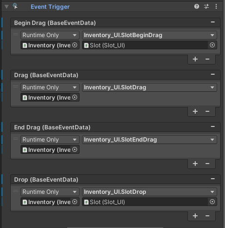 그러기 위해선 Slot 프리팹에 Event Trigger 컴포넌트를 추가해줘야 한다.
