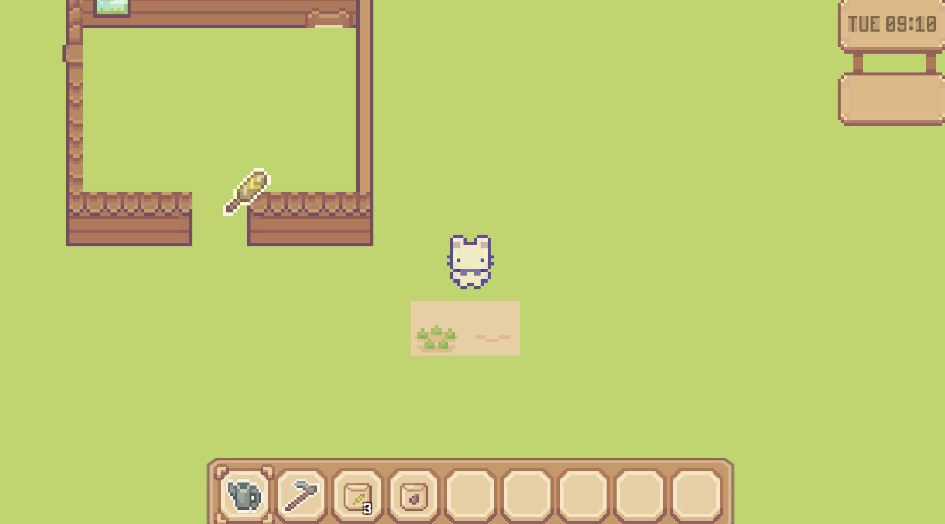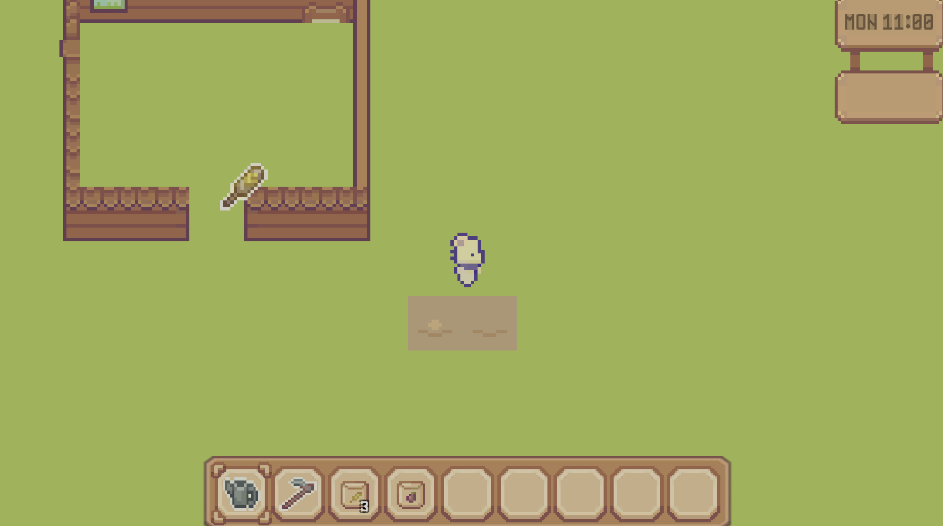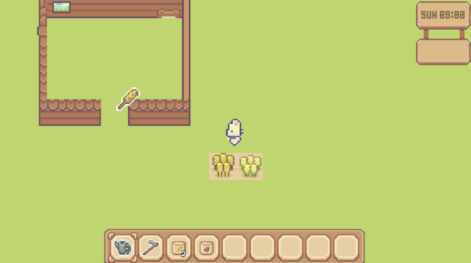 다 성장한 식물을 호미를 들고 클릭하면 식물이 생성되도록 했다.