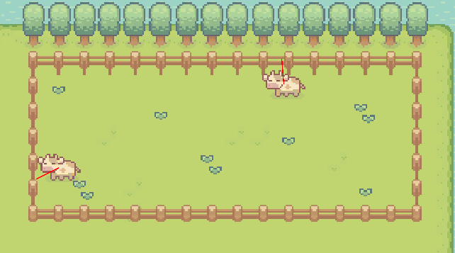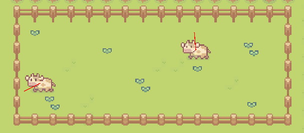 Raycast를 통해 울타리를 인식하면 이동을 멈추고, 랜덤한 방향으로 다시 이동시키게끔 하였다. 그리고 그 방향에 맞게 sprite를 전환해주었다.