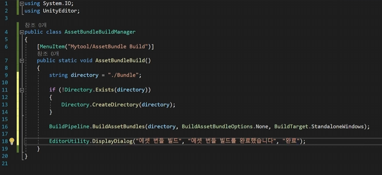 2. 에셋 번들을 빌드하는 코드 작성. 스크립트 생성