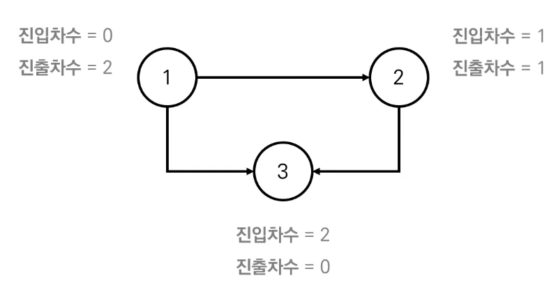 - 진입차수(Indegree) : 특정한 노드로 들어오는 간선의 개수