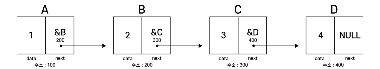 이렇게 선언한 구조체를 통해 연결리스트를 만들 수 있다.