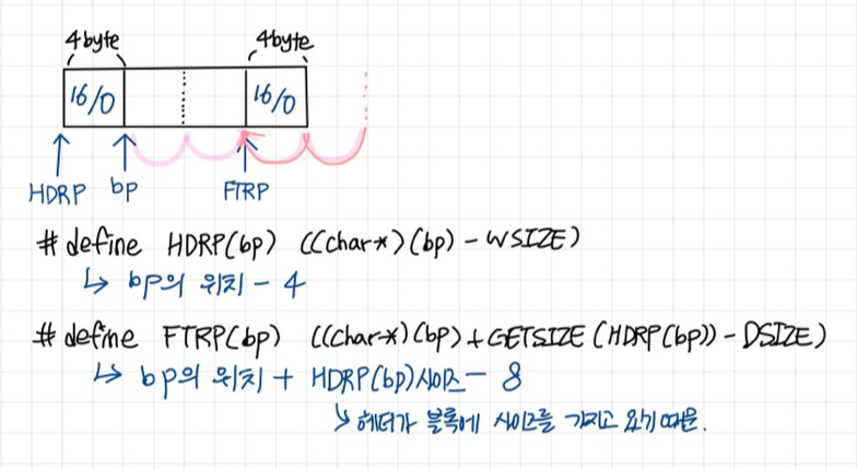 #define FTRP(bp) ((char *)(bp) +GET_SIZE(HDRP(bp))-DSIZE)