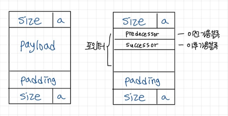 κ° κ°μ© λΈλ‘ λ΄μ pred(predeccseor)μ succ(successor) ν¬μΈν°λ₯Ό ν¬ν¨νλ μ΄μ€ μ°κ²° κ°μ© 리μ€νΈλ‘ ꡬμ±.