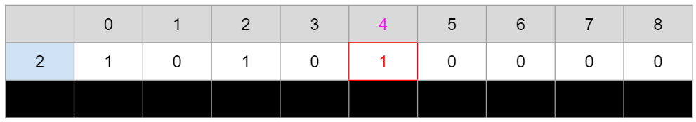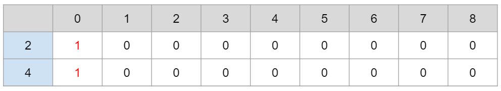 우선 dp table을 만들고 행에는 우리가 가지고 있는 동전 (2원 4원), 열은 우리가 만들어야 하는 금액을 의미한다.