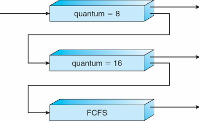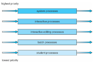 - 우선순위에 따른 준비 큐가 여러 개의 큐들로 나뉘고 각각의 큐마다 각자의 스케줄링 알고리즘 을 적용한 것이다.